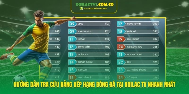 Hướng dẫn tra cứu Bảng xếp hạng tại Xoilac TV nhanh nhất